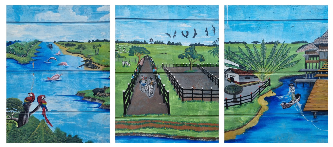 A pocos días de dejar Puerto Gaitán vi, al frente del hotel en donde me hospedaba, un mural gigante que representaba una colorida escena de la Orinoquía con los elementos que habían despertado mi interés por visitarlo y que me hizo dar cuenta de algo: “No he visto esto en las dos semanas que llevo viajando”. Hasta ese momento, el viaje había sido principalmente urbano y la máxima inmersión natural que había hecho era navegar el río Metica –un brazo del río Meta– en Puerto López. Así que le pregunté al recepcionista del hotel cómo hacía para conocer eso que veía en el mural. Su respuesta fue iluminadora: “Tiene que ir río adentro”. Es decir, navegar el río Meta hacia el oriente atravesando las fronteras de tres departamentos: Meta, Casanare y Vichada. “Wow, ¡eso sí es un viaje!”, pensé.